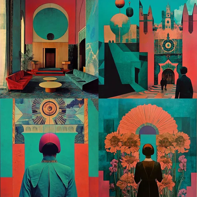В этом своеобразном стиле яркий сюрреализм сочетается с геометрической точностью. Контрастные цвета и структурированные композиции создают сказочные сюжеты. Архитектурные мотивы и стилизованные персонажи живут в футуристических городах и среди абстрактных форм, отражая слияние ностальгии и футуризма.
