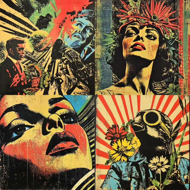 Этот стиль отлично передаёт винтажный гламур и атмосферу научной фантастики с помощью многослойных композиций и высокого контраста. Он часто используется в дизайне постеров и графических новеллах, но может быть не слишком уместен в фотореалистичных контекстах.