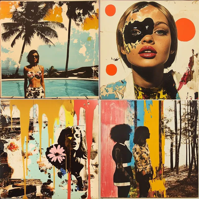 Этот стиль — яркий, насыщенный и глубоко укоренённый в эстетике поп-арта. Он основан на ностальгических темах и ретро-мотивах. Благодаря использованию смешанных техник и коллажей создаётся богатая текстурная глубина, а яркие цвета и смелые контуры вызывают ощущение игривой причудливости.
