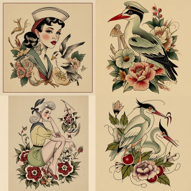 Хотя этот стиль особенно хорош для редакционной иллюстрации и дизайна татуировок, ему иногда сложно передать фотореализм, особенно в фотографическом контексте. Тем не менее уникальное сочетание винтажных и современных элементов открывает широкие возможности для творческого применения в брендинге, моде и иллюстрациях для повествования.