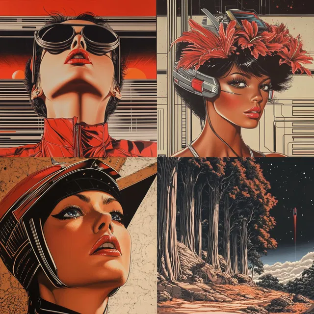 Этот стиль отлично подходит для воплощения футуристических тем: героических персонажей и высоких городских пейзажей. Однако в некоторых контекстах ему может не хватать фотореализма, поскольку он предпочитает стилизованный реализм, который подходит для графических романов и концепт-арта.