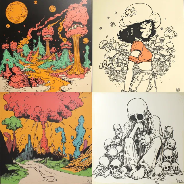 Этот стиль отлично подходит для графических романов, анимации и иллюстративных редакционных материалов, придавая им ностальгическое очарование, напоминающее комиксы середины XX века и поп-арт. Однако ему может не хватать фотореализма и сложных деталей, что ограничивает его применение в гиперреалистичных контекстах.