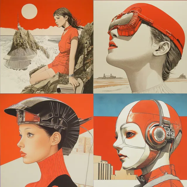 Стиль особенно хорош для изображения футуристических городских пейзажей и персонажей, предлагая уникальную интерпретацию технологического прогресса и культурного синтеза. Однако постоянное использование контрастов и графичности может ограничивать его применение в более тонких или фотореалистичных контекстах.