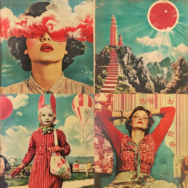 Яркий ретро-сюрреализм завораживает своими смелыми, сказочными композициями, сочетая эстетику середины XX века с сюрреалистическими элементами. В основе стиля — яркие цвета и резкие контрасты, которые создают причудливые и фантазийные сюжеты. Его сила заключается в способности вызывать ностальгию, одновременно исследуя фантастические темы.