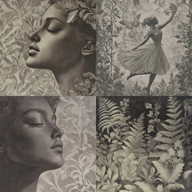 Этот стиль отличает сложная детализация и органичный поток линий. В нём сочетаются влияние модерна и прерафаэлитов с современными элементами. Богатство текстур и тонкие контрасты создают декоративную элегантность, что проявляется в использовании тонов сепии и монохромных палитр.