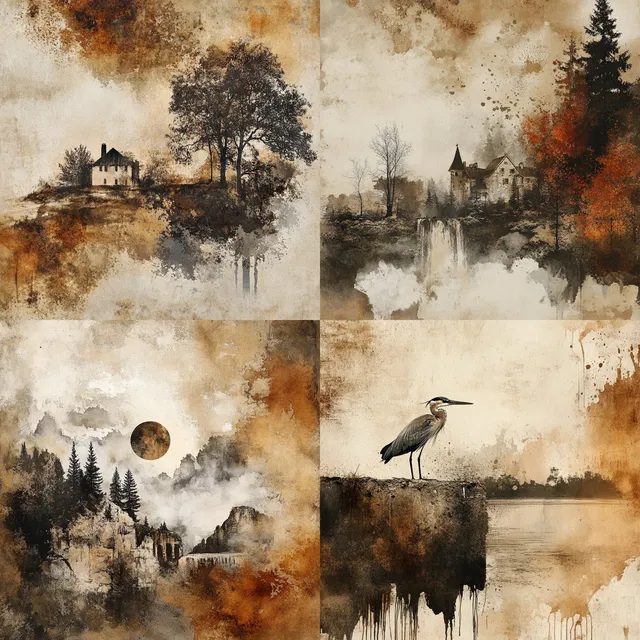 Этот стиль отличается насыщенной текстурой и характерной земной палитрой. Он превосходно создаёт атмосферную глубину и органично объединяет разные объекты. Многослойность и натуральные тона вызывают ощущение деревенского шарма и винтажного тепла, напоминая романтические и тональные течения.