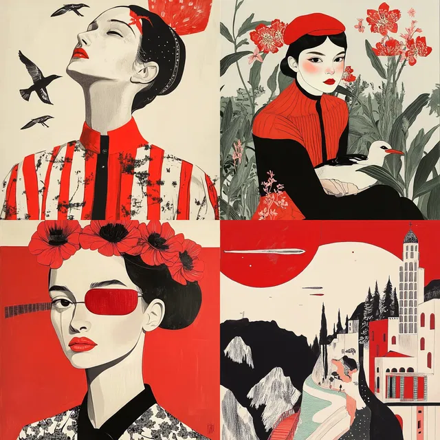 Этот стиль идеально подходит для редакционного дизайна, модной иллюстрации и брендинга. Он отлично работает в тех сферах, где требуется смелое визуальное воздействие и культурная глубина.