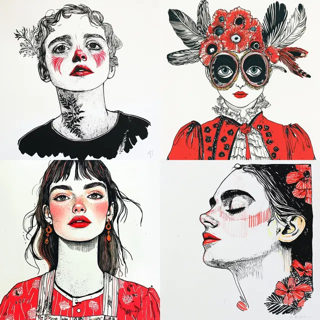 Стиль отличается детализированными композициями, выразительным изображением персонажей и богатыми украшениями. Это делает его идеальным для модной иллюстрации и редакционного дизайна. Однако из-за сильной стилизации он может быть менее эффективен в фотореалистичных контекстах, например, при изображении спокойных пейзажей или технических чертежей.