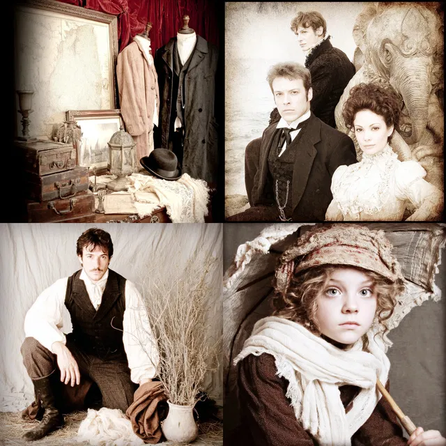 Этот стиль превосходно подходит для изображения моды прошлых эпох, индустриальных пейзажей и элементов ретрофутуризма, что делает его идеальным для исторических фильмов и винтажного брендинга. Однако использование сепии и винтажных эффектов может ограничивать его универсальность в более современных или ярких контекстах, где может потребоваться более широкая цветовая палитра и актуальные темы.