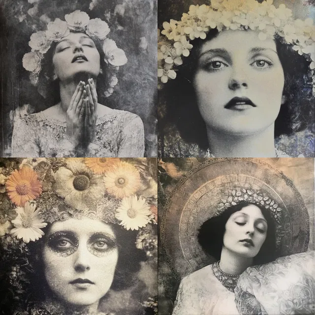 Композиции мистические и чарующие, часто включают в себя эфемерные фигуры и цветочные мотивы, напоминающие искусство ар-нуво и символизм. Хотя стиль прекрасно подходит для создания атмосферных и вызывающих эмоции образов, ему может не хватать фотореализма в определённых контекстах.