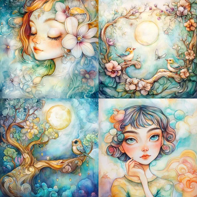 Этот стиль завораживает своей воздушностью и сказочностью. Плавные линии и естественные формы создают ощущение движения и жизни, а пастельные тона и мягкие градиенты вызывают нежную, сюрреалистичную атмосферу.