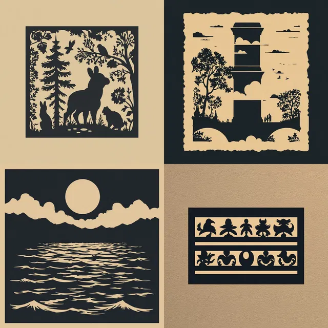 Искусство силуэта занимает доминирующую позицию, используя высокий контраст и негативное пространство для создания ярких визуальных повествований. Этот стиль отличается мастерством игры с тенями, предлагая минималистичный, но выразительный подход к различным темам — от волшебных сказок до футуристических пейзажей.