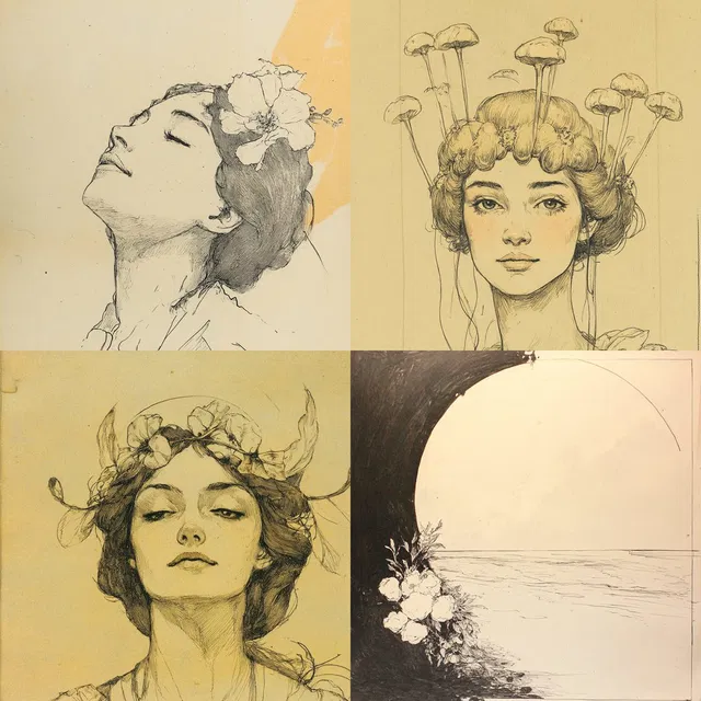 Изящество стиля Ethereal Linework Elegance проявляется в сложной линейной работе и напоминает набросок, вызывая ощущение текучести и выразительности. В этом стиле часто используется монохромная палитра или оттенки сепии, что усиливает ощущение вневременности и атмосферы.