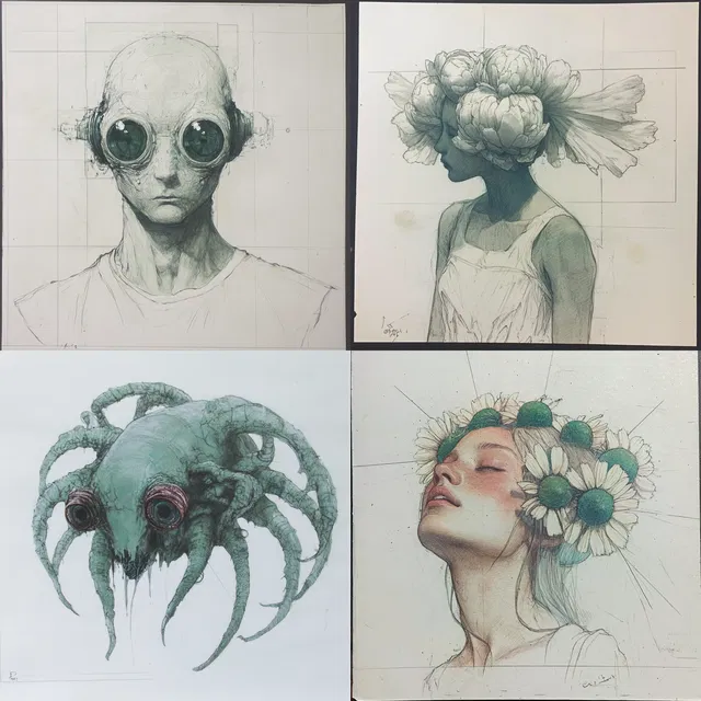 Этот стиль завораживает своим сюрреалистичным и необычным визуальным языком. В нём преобладают небрежные, грубые линии и приглушённая, монохромная палитра. Всё это вызывает чувство самоанализа и размышлений. Органичные формы и замысловатые детали создают плавный, текучий эстетический образ, напоминающий работы Х. Р. Гигера и Сальвадора Дали.