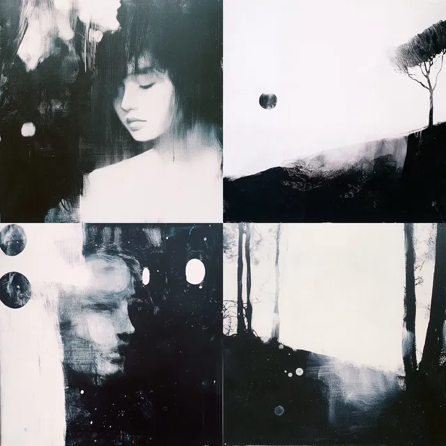 В этом стиле преобладает монохромная палитра. Он исследует игру света и тени, создавая эфемерную атмосферу. Использование мягкого фокуса и размытых краёв придаёт изображению сказочное качество, а абстрактные и минималистичные элементы дизайна способствуют ощущению современности и футуризма.