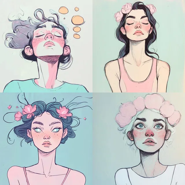 Мягкие линии и пастельная палитра определяют этот стиль, создавая мечтательную атмосферу, которая вызывает ностальгию и невинность. Преобладают простые формы и плавные изгибы, которые придают причудливый оттенок юным персонажам и безмятежному окружению. Приглушённые тона и тонкие градиенты усиливают неземное настроение, а минималистичный дизайн сохраняет композиции чистыми и аккуратными.