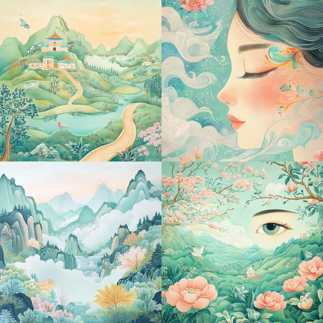 Волшебные пастельные пейзажи создают безмятежный и неземной мир с помощью изящной работы кистью и плавных композиций. В этом стиле запечатлены идиллические пейзажи и мифические элементы с романтическим оттенком. Вдохновение взято из китайской пейзажной живописи и романтизма.