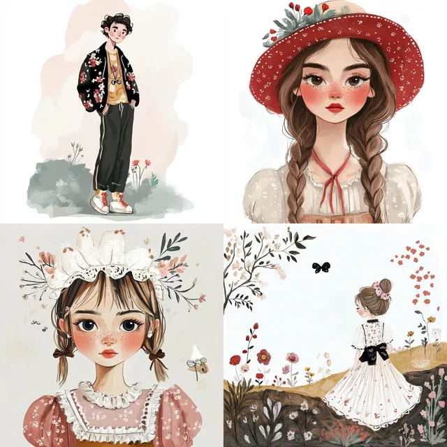 Использование цветочных мотивов и плавных линий создаёт игривую, но утончённую атмосферу, которая идеально подходит для детских книг и иллюстраций в моде. Хотя стиль особенно хорош для создания причудливых и сказочных сцен, ему может не хватать точности, необходимой для фотореалистичных или узкоспециализированных задач.