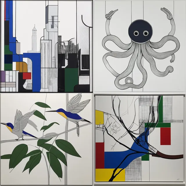 Однако зависимость от геометрической абстракции может ограничить его эффективность в передаче эмоциональной глубины или фотореалистичных деталей, особенно в контекстах, где требуются насыщенные цвета или сложные текстуры.