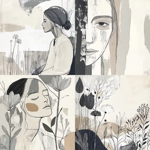 Этот стиль отличается минималистичной эстетикой. Он создаёт безмятежные и спокойные композиции с помощью приглушённых тонов и мягких контрастов. Изящные линии и тонкие текстуры вызывают ощущение спокойного самоанализа, часто сочетая органические формы с абстрактными.
