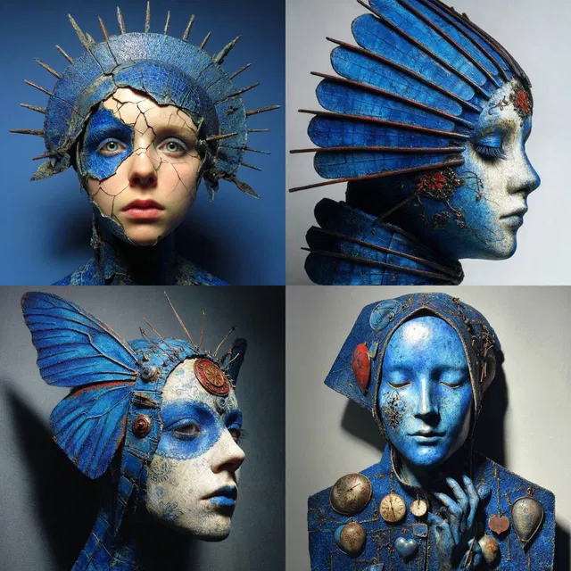 Этот стиль отличается насыщенной синей палитрой с выраженной текстурой. Он создаёт сюрреалистичные, сказочные образы со сложными деталями и органическими формами.