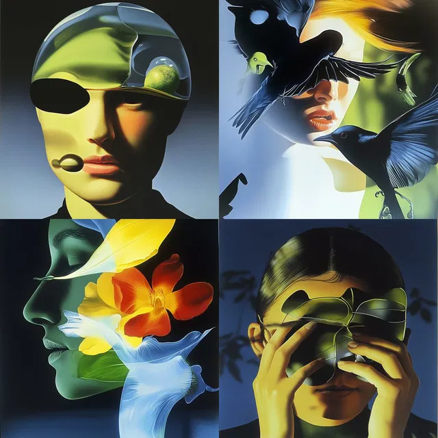 Этот стиль ярко сочетает в себе элементы сюрреализма и футуризма. Он завораживает воображение своими сказочными и текучими композициями. Использование ярких цветов и смелых контрастов создаёт поразительный визуальный эффект, а мягкие градиенты и игра света добавляют глубины и движения.