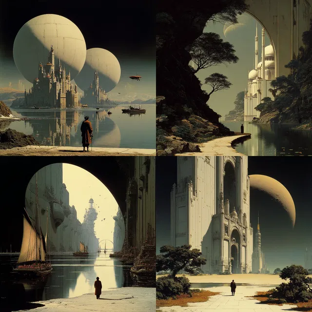 Футуристические и мифические элементы переплетаются, создавая уникальное сочетание ретрофутуризма и сюрреализма. Однако глубина атмосферы и сюрреалистичное освещение, характерные для этого стиля, могут затмить точный фотореализм, что делает его менее подходящим для строго реалистичных изображений.