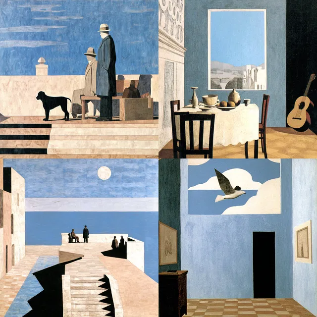 Вдохновение явно черпается из сюрреализма и метафизического искусства, в нём слышны отголоски творчества Джорджо де Кирико и Рене Магритта.