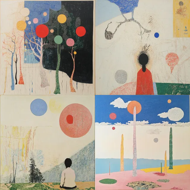 Этот стиль — причудливый и сюрреалистичный. Он сочетает абстрактные формы с фантастическими композициями, вызывая ощущение игривого исследования.