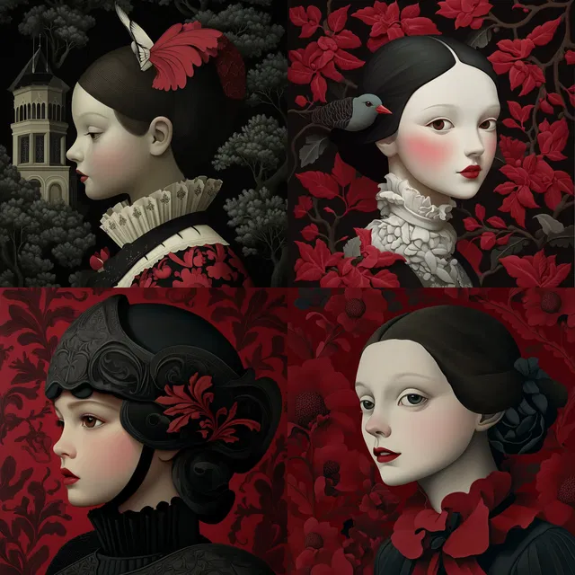 Он идеально подходит для модных редакций, книжных иллюстраций и культурных выставок. Стиль предлагает уникальное сочетание художественной утончённости и творческого повествования.