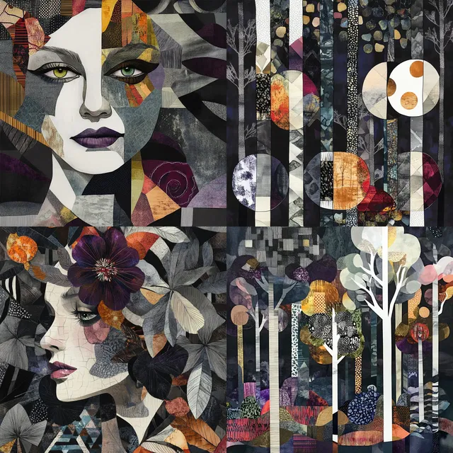 Этот стиль — уникальное сочетание геометрической абстракции и коллажа. Он основан на композициях из разнородных элементов и фактурных поверхностях. В нём чувствуются влияния модернизма: отголоски творчества Мондриана и Клее, но при этом сохраняется уникальная угловатая эстетика.