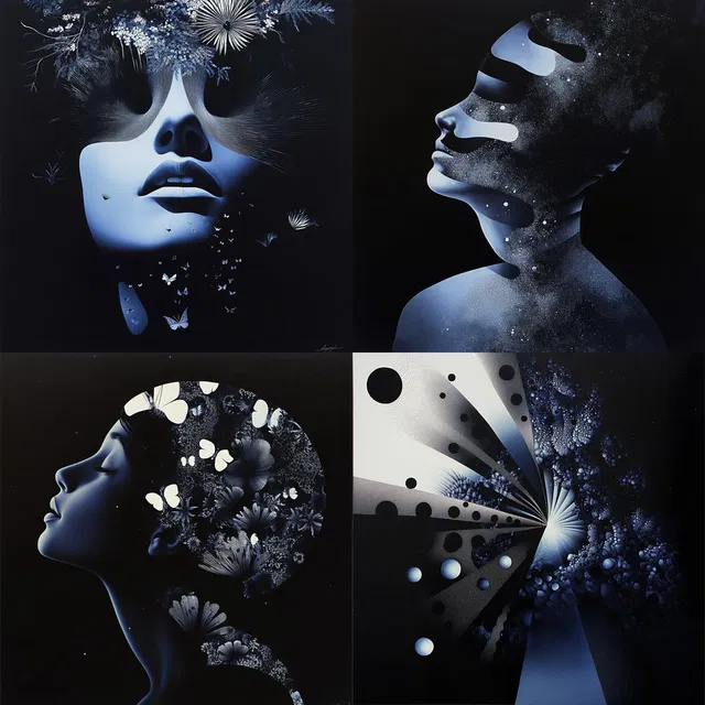 Композиции одновременно сюрреалистичны и точны. В них сочетаются элементы фантастики и футуризма с графическим дизайном.