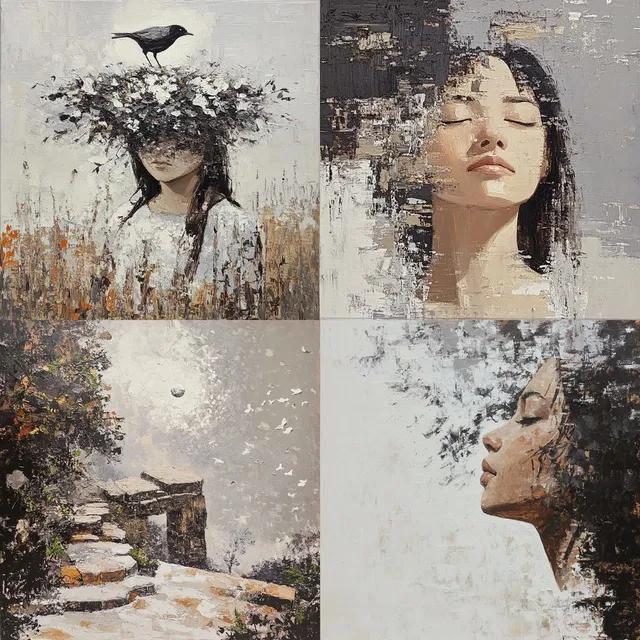 Текстурный импрессионистский фьюжн — это стиль, в котором импрессионистская техника письма кистью сочетается с современными дизайнерскими подходами. Это позволяет создать уникальный визуальный язык. Фрагментарные изображения и многослойные композиции этого стиля вызывают чувство ностальгии и жажду открытий, а приглушённые цвета и мягкое освещение создают глубину атмосферы.
