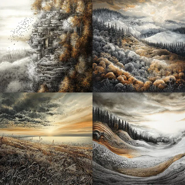 Стиль прекрасно подходит для изображения как природных ландшафтов, так и городских пейзажей, часто сочетая исторические и культурные элементы. Его сила заключается в способности передавать настроение и атмосферу, что делает его идеальным для книжной иллюстрации, редакционного дизайна и концепт-арта.