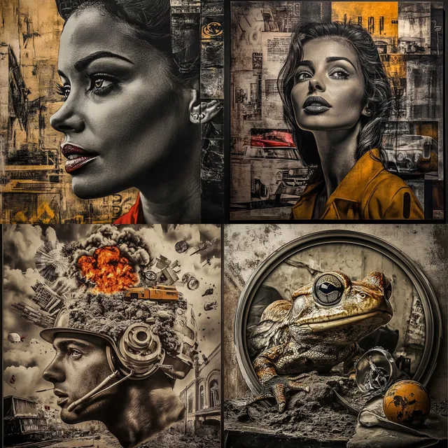 Текстурная насыщенность и многослойность композиций определяют этот стиль, в котором ностальгические тона сочетаются с сюрреалистическими элементами. Тона сепии и землистые оттенки создают тёплую винтажную эстетику, а замысловатые детали и выразительная глубина вызывают ощущение исторической и культурной ностальгии.