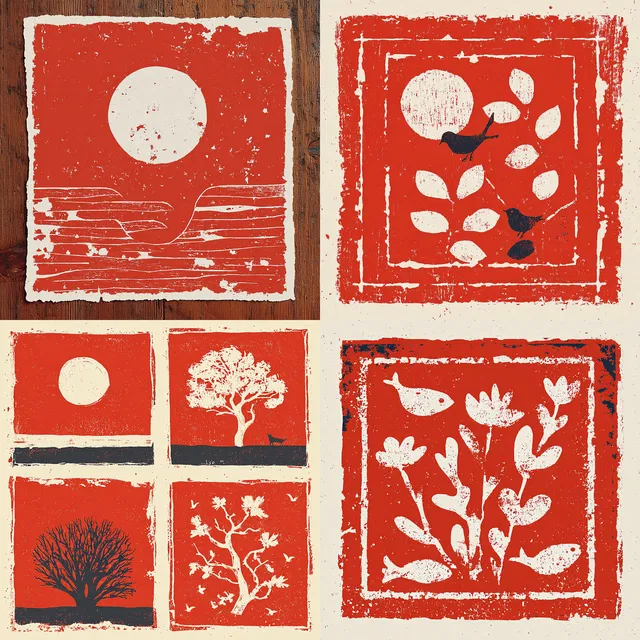 Постоянное использование техник линогравюры и блочной печати в различных темах — от футуристической биоархитектуры до ретропанк-рыцарей — подчёркивает универсальность стиля. Он отлично подходит для создания эффектных визуальных повествований и запоминающегося дизайна.