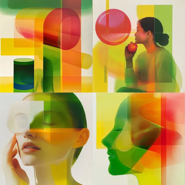 Прозрачные слои и яркие цвета определяют этот стиль, создавая светящееся и динамичное визуальное впечатление. Геометрические формы и мягкие градиенты гармонично сочетаются, предлагая современную и футуристическую эстетику.