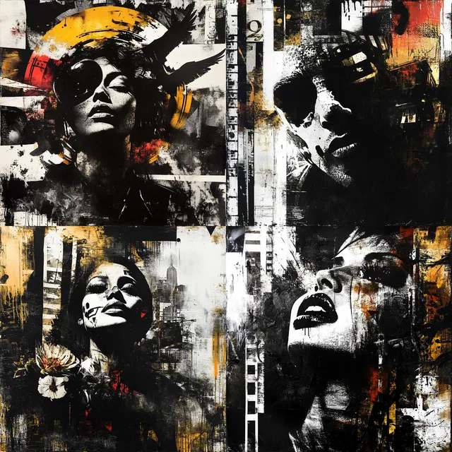 Он идеально подходит для обложек альбомов, уличного искусства и редакционного дизайна. Такой стиль прекрасно вписывается в контексты, где требуются смелые, выразительные визуальные решения.