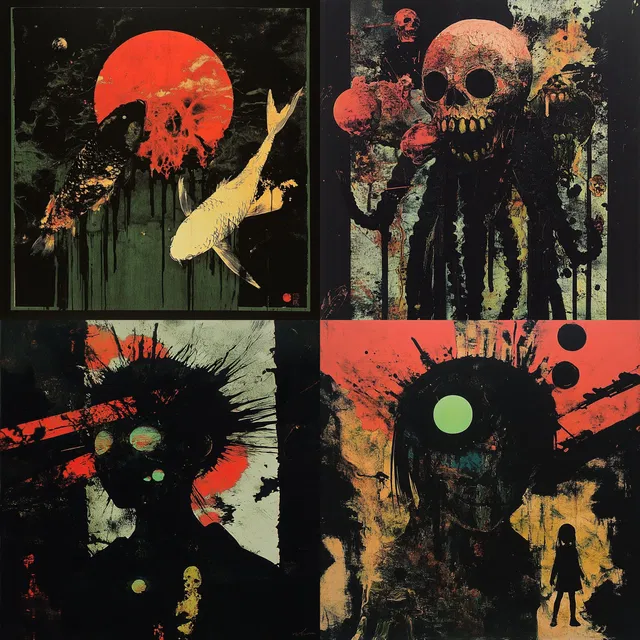 Этот стиль — дерзкое исследование неогранжевой эстетики. Он основан на высоком контрасте и насыщенных цветах, что создаёт мощное, живое впечатление. Потрёпанные текстуры и смелые мазки вызывают ощущение городского упадка и экзистенциального страха, часто проявляясь в сюрреалистичных, завораживающих образах.