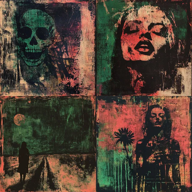 В эстетике гранжа преобладают изношенные текстуры и приглушённая цветовая палитра, которые создают мрачную и жуткую атмосферу. Этот стиль отлично передаёт атмосферу городского упадка и современной дистопии с акцентом на тёмные и загадочные темы. Текстурированные поверхности и грубая отделка добавляют глубину, а ограниченная палитра усиливает ощущение винтажности.