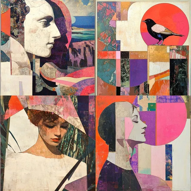 Преобладает яркая геометрическая абстракция с характерным сочетанием угловатых форм и смелой, динамичной цветовой палитры. Авангардный подход стиля проявляется в новаторском использовании текстур, напоминающих коллажи, и многослойных композиций, которые создают сложное визуальное повествование.
