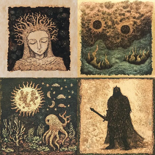 Использование землистых тонов и мягких контрастов придаёт работам атмосферность и выразительность. Замысловатые детали приглашают зрителей погрузиться в более глубокие сюжеты, скрытые за каждым изображением.
