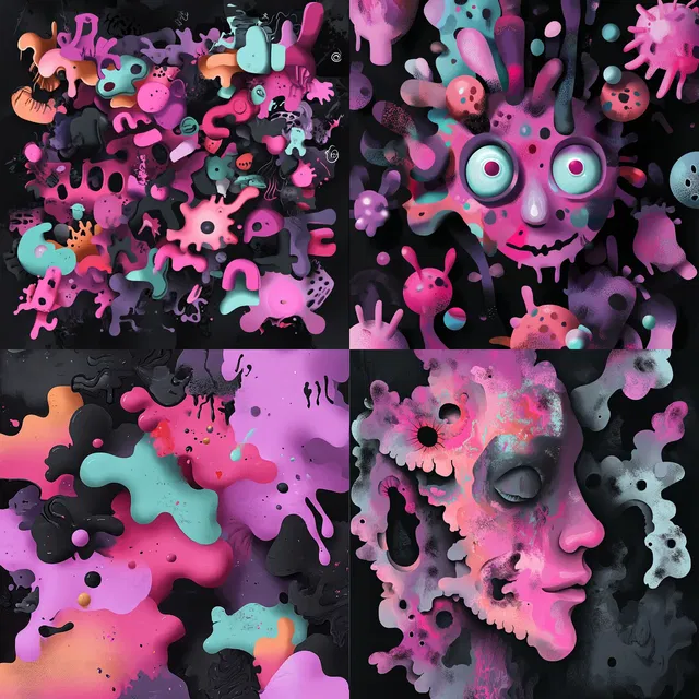 Для этого стиля характерны яркие цвета и смелые контрасты, которые создают игривую и причудливую атмосферу. В нём часто встречаются элементы сюрреализма и сказочные мотивы, динамичные композиции и энергичные линии.