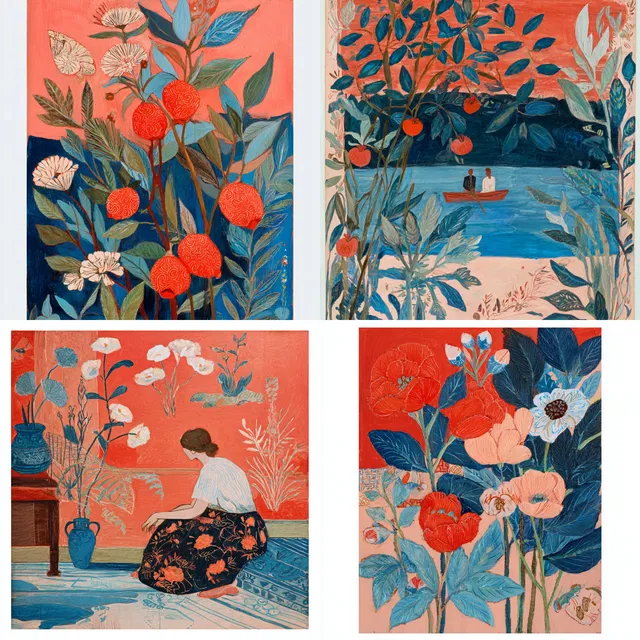 Этот стиль определяют смелые цветовые контрасты и выразительная манера письма. В нём сочетается яркость фовизма с элегантностью ар-нуво. Богатые текстуры и многослойные композиции создают динамичное визуальное восприятие. Декоративные мотивы и цветочные узоры вызывают ощущение причудливости и волшебства.