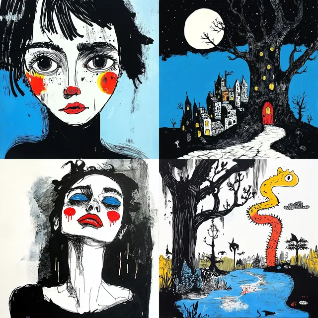 Поразительный визуальный стиль, характеризующийся смелыми контурами, плоскими цветами и высокой контрастностью, создаёт динамичную и выразительную эстетику. Этот стиль отличается графическими и иллюстративными качествами, часто используя упрощённые формы и чёткие контуры для передачи эмоций и повествования.