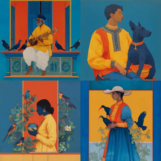 Стиль прекрасно подходит для создания иллюстраций с повествованием, передавая культурные истории с помощью выразительных черт и эмоциональной глубины. Однако его отклонение от фотореализма ограничивает применение в строго реалистичных контекстах.