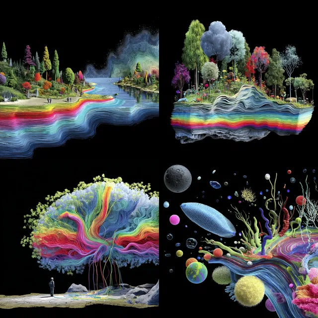 Этот стиль отличается взрывной яркостью и замысловатыми деталями. В нём переплетаются яркие нити, создавая сюрреалистичные пейзажи и фантастические сцены.