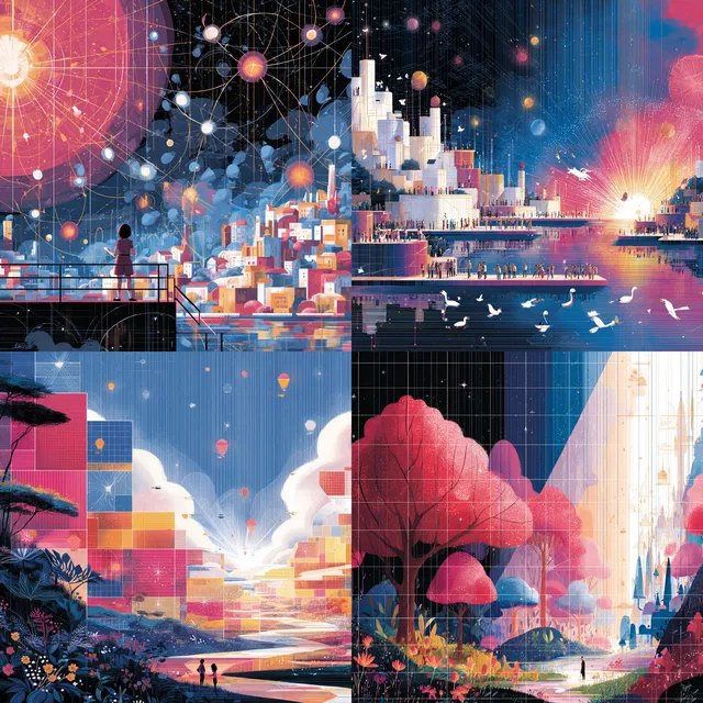 Стиль превосходно создаёт многослойную глубину и многомерность, используя сложные сетки и структурированные макеты для разработки визуально привлекательных историй. Однако его опора на смелые графические элементы может ограничить эффективность в фотореалистичном или минималистичном контексте.
