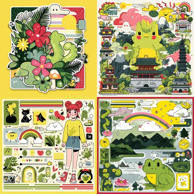 Этот яркий и игривый стиль отличается использованием смелых цветов и причудливых дизайнов. Применение насыщенных жёлтых, зелёных и розовых оттенков создаёт весёлую и поднимающую настроение атмосферу, напоминая поп-арт и современную иллюстрацию.