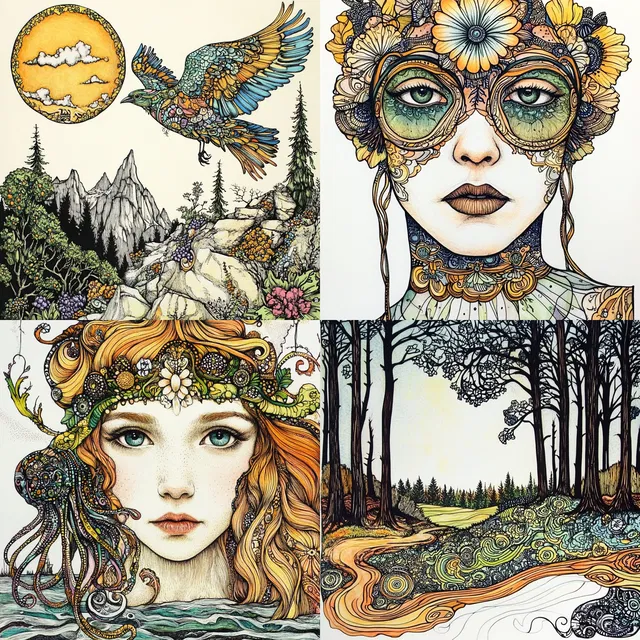 Этот стиль отличается сложной детализацией и тщательно продуманными композициями, в которых заметно влияние ар-нуво и викторианского стиля. Здесь преобладают насыщенные текстуры и витиеватый дизайн. Особое внимание уделяется мотивам, вдохновлённым природой, и ботаническим темам. Цветовая палитра тяготеет к земляным и природным оттенкам, что усиливает ощущение естественности.